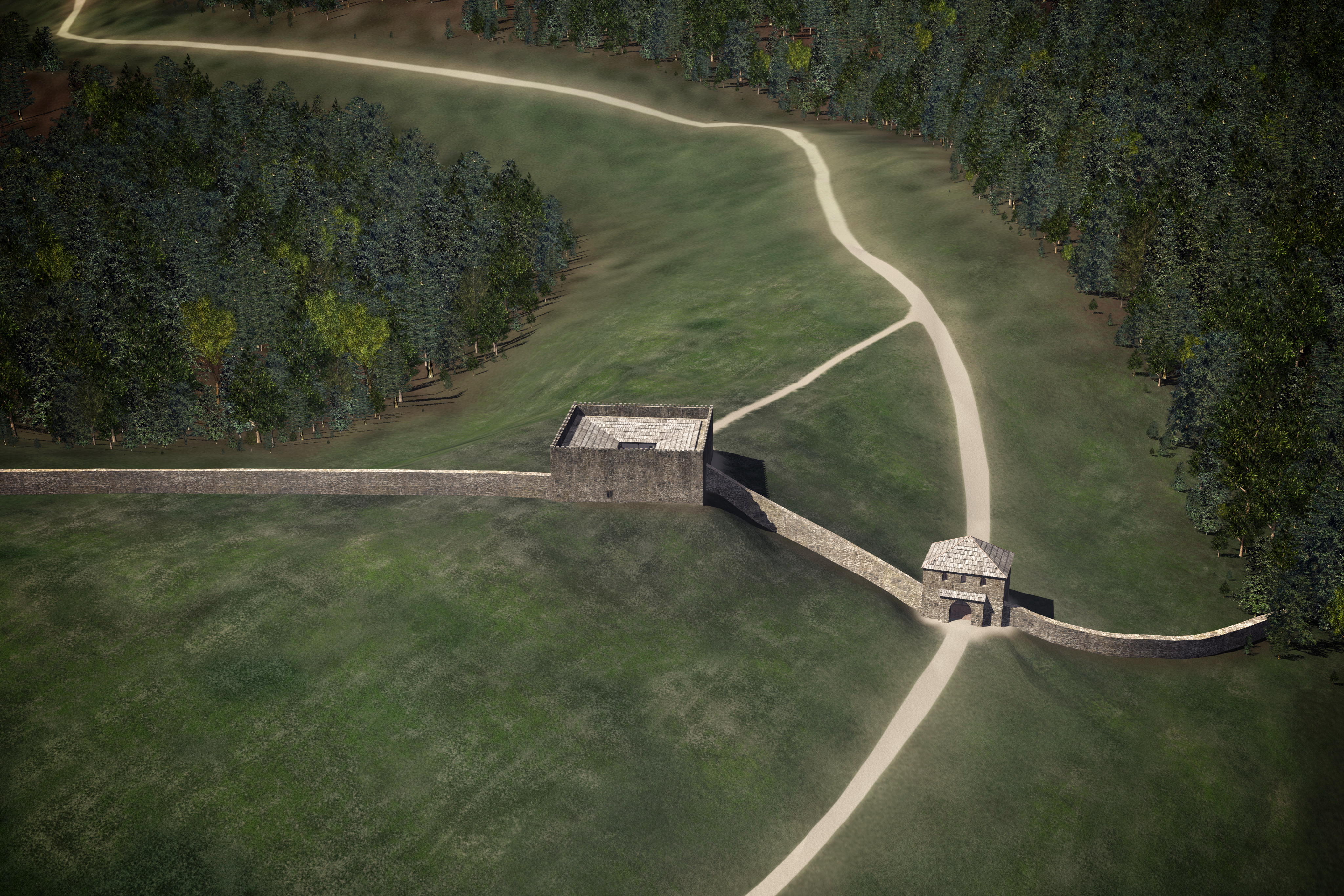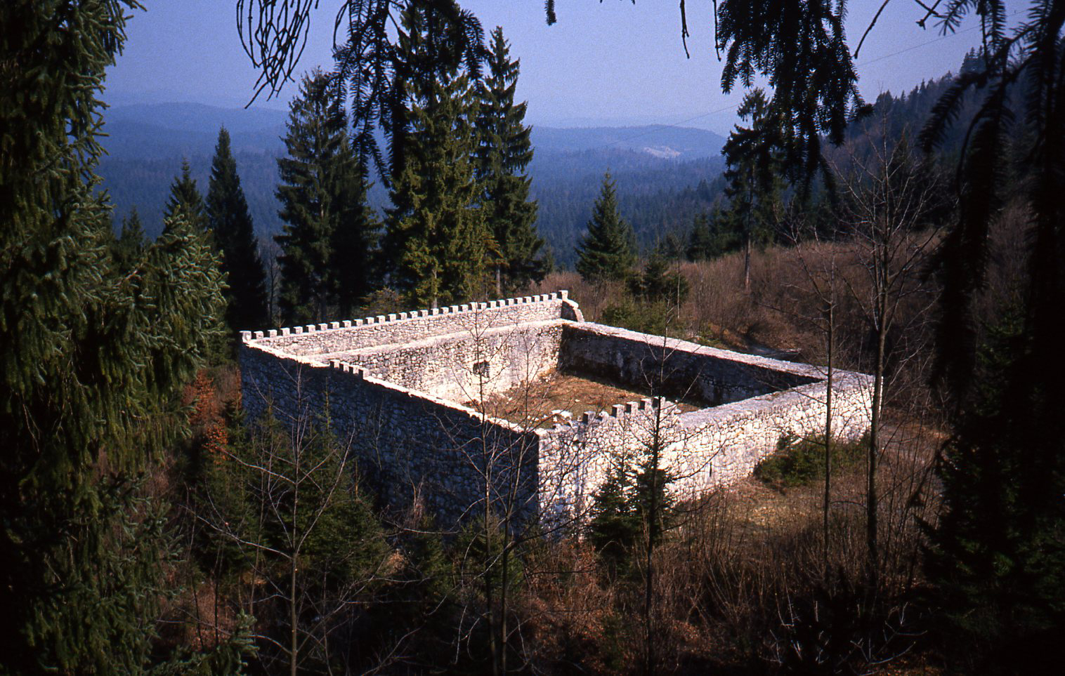 Sjeverno od utvrde zid se može pratiti približno pet metara. Niže na obroncima, usporedno s današnjim šumskim putem, prolazi stariji kolski put, pretpostavlja se trasa nekadašnje rimske ceste. U njegovom usjeku mogu se vidjeti veće količine vapnenaste žbuke i lomljenog kamena, što su najvjerojatnije ostaci sjevernog zida. Jugoistočno od utvrde je zid bolje očuvan. Najprije se proteže po rubu prirodnog platoa iznad ceste, a nakon toga skreće prema jugu, gdje u većoj kamenoj gomili završava na obroncima Srnjaka. Cijeli očuvani zid na toj zapreci dug je približno 315 metara, a kule do sada nisu otkrivene.